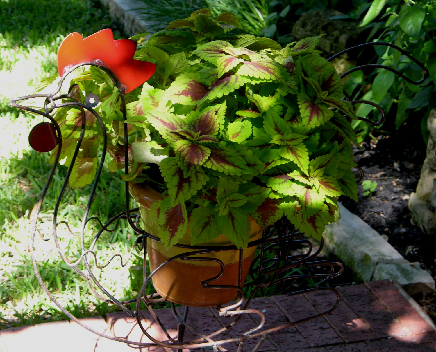 I put out my Fall garden decorations. I love this scrap-metal scare crow – a tea light goes in its head.