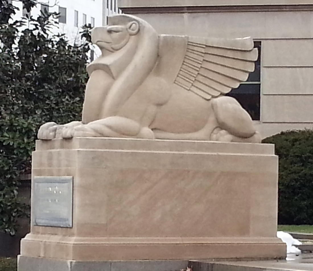 This is one of the Acacia Griffins at 51 Louisiana Avenue, now the Jones Day Building. The epitome of Art Deco.