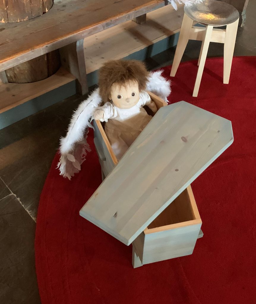 This macabre little vignette was in the corner where they do the children’s sermon.