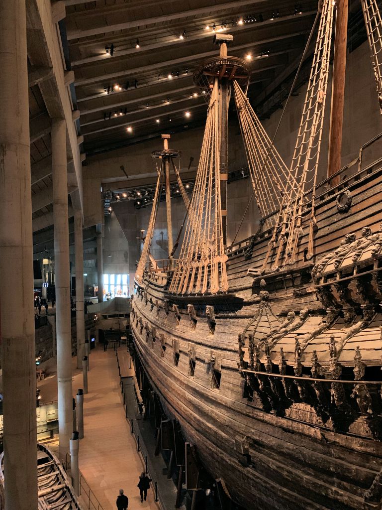 From there, it was on to the Vasa Museum. The Vasa was a war ship built by King Gustavus Adolphus in 1626 – 1628 for his war with Poland-Lithuania. The king directed its construction, which turned out to be a bad thing since he knew absolutely nothing about naval architecture. It turned out it was top-heavy. On its maiden voyage on 10 August 1628, it pulled away from the dock, sailed about 1,500 yards, capsized, and promptly sank to the bottom of the harbor. In the 1950s and 60s, it was raised from water and restored. It’s now a museum.