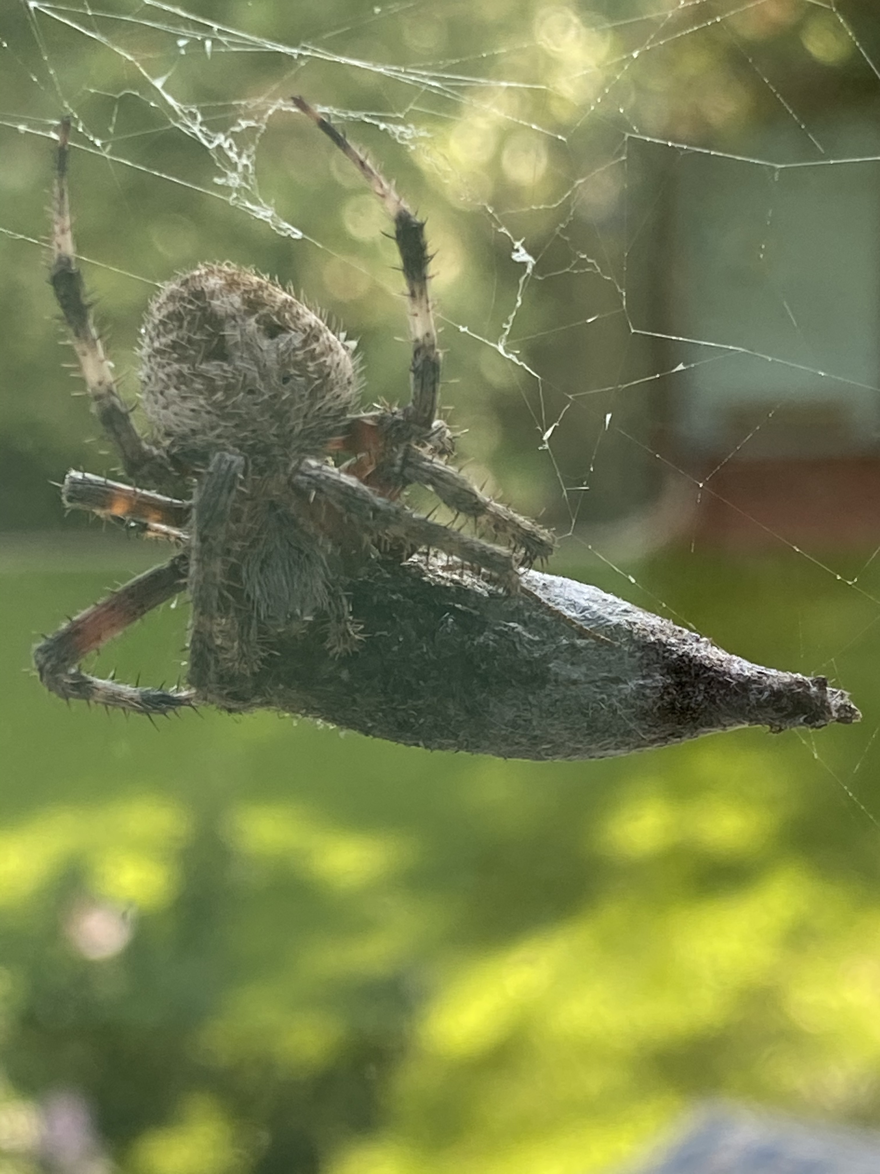 One Sunday morning, I noticed what looked like some kind of zipper spider brunching on some prey outside my bedroom window. Last week, I saw this Garter snake surreptitiously drinking from the tiered fountain. I can deal with these creepy-crawlies; it’s the rattlesnakes that still scare the bejeezus out of me.